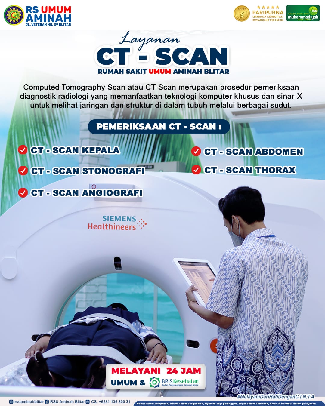 Menerima pasien umum, BPJS dan provider asuransi yang telah bekerja sama dengan RSU Aminah